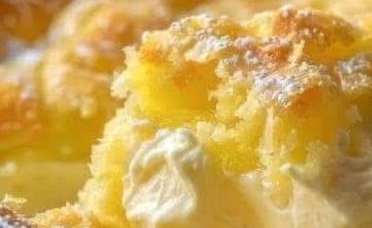 Ingredients:°1 box of yellow cake mix°1 package (21 ounces) lemon pie filling°1 pack (8 oz) soft cream cheese°1/2 cup (1 stick) melted unsalted butterPREPARATION:Preheat oven to 175°F and grease a 9″ x 13″ baking dish.In a large bowl, mix yellow cake mix and melted butter. Mix until crumbly.Spread half of the breadcrumb mixture evenly in the bottom of the prepared baking pan, pressing gently.In a separate bowl, whisk the lemon pie filling and the softened cream cheese until well combined and smooth.Spoon the lemon cream cheese mixture over the crumb layer in the baking dish, spreading evenly.Sprinkle the rest of the breadcrumb mixture on top until a crumbly layer forms.Bake in preheated oven for 40 to 45 minutes or until golden brown and cake is set in center.Remove from the oven and let it cool for a few minutes before serving.Cut into squares and serve warm or at room temperature. Optionally, you can sprinkle with powdered sugar or a little whipped cream.Enjoy !