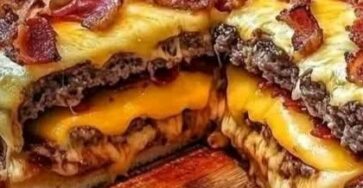 Cheese, and Bacon Slices 🍔🍕A mouthwatering fusion of two classics: burgers and pizza! This oversized creation is packed with juicy…