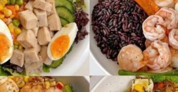 Sauté chicken cubes with broccoli, carrots, corn, and cherry tomatoes. Season with soy sauce, garlic, and sesame seeds. Toss boiled…