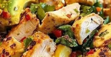 Ingredients : Salad:– 2-4 cups shredded chicken– 1 avocado, sliced– ½ red onion, sliced– ½ cup halved kalamata olives– 1…