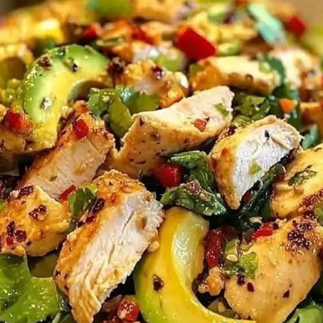 1. Combine the Salad Ingredients:– In a large mixing bowl, combine the shredded chicken, avocado slices, red onion, kalamata olives, sun-dried tomatoes, crumbled feta cheese, and pine nuts.– Optional: Toast the pine nuts in a dry skillet over medium heat until golden brown, then let them cool before adding to the salad.2. Prepare the Dressing:– In a separate bowl or jar with a tight-fitting lid, combine the olive oil, Greek yogurt, mayo, salt, pepper, garlic powder, dried dill, sugar, white wine vinegar, and lemon juice.– Whisk or shake well until all ingredients are thoroughly combined.3. Assemble the Salad:– Drizzle the dressing over the salad ingredients in the bowl.– Gently toss everything together until the dressing coats every component evenly.– Taste and adjust seasoning if needed.4. Serve:– This salad can be served immediately or refrigerated for a short time to allow the flavors to meld.– It’s perfect as a side dish for a summer party or a delicious meal on its own.—Tips:– Make Ahead: Prepare the salad and dressing separately, then combine just before serving to keep the avocado fresh.– Add Greens: Serve over a bed of mixed greens or spinach for extra freshness.– Protein Boost: Add chickpeas or grilled shrimp for an extra protein boost.– Storage: Store leftovers in an airtight container in the fridge for up to 2 days.—Enjoy this vibrant and wholesome Greek Avocado Chicken Salad—a perfect blend of Mediterranean flavors that’s both satisfying and nutritious!