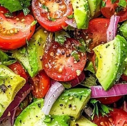 🥑🍅🧅Halve the cherry tomatoes, dice the avocado, and slice the red onion thinly. Chop the fresh parsley or cilantro.Assemble the Salad 🥗:In a large bowl, add arugula or mixed greens as the base.Top with avocado, cherry tomatoes, red onion, and fresh herbs.Season and Dress 🍋🫒🧂:Drizzle the salad with olive oil and fresh lemon juice.Season with salt and freshly ground black pepper.Toss and Serve 🍴:Gently toss to mix the ingredients without mashing the avocado.Enjoy this light, healthy, and vibrant salad! 🥗 Perfect as a side or a quick lunch.