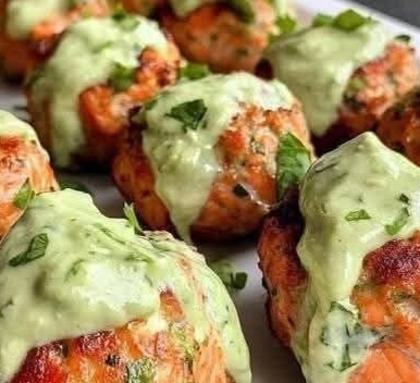 Deliciously Baked Salmon Meatballs with a Tangy Avocado Sauce