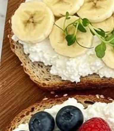 Whole grain breadCottage cheeseBanana slicesGround cinnamonInstructions:Spread cottage cheese over the toast, top with banana slices, and sprinkle with cinnamon.—2. Cucumber & Tomato ToastIngredients:Whole grain breadCottage cheeseSliced cucumbersCherry tomatoes (halved)Instructions:Spread cottage cheese on toast and layer cucumber and tomato slices.—3. Smoked Salmon & Capers ToastIngredients:Whole grain breadCottage cheeseSlices of smoked salmonCapersFresh dillInstructions:Spread cottage cheese, add salmon, capers, and garnish with dill.—4. Banana & Microgreens ToastIngredients:Whole grain breadCottage cheeseBanana slicesMicrogreensInstructions:Spread cottage cheese, layer banana slices, and top with microgreens.—5. Berry ToastIngredients:Whole grain breadCottage cheeseFresh raspberriesFresh blueberriesInstructions:Spread cottage cheese and top with fresh berries.—6. Boiled Egg ToastIngredients:Whole grain breadCottage cheeseBoiled egg slicesCrushed red pepper or everything bagel seasoning