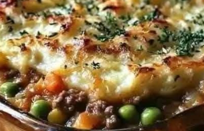 Assemble the pie: Transfer the beef and vegetable mixture into a 9×13-inch baking dish. Spread the prepared mashed potatoes evenly over the top, smoothing them with a spatula.