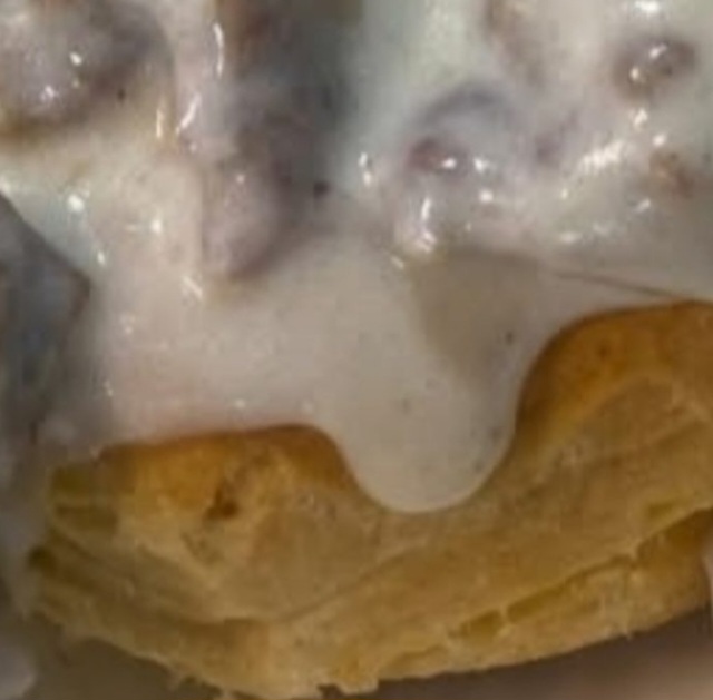 Split warm biscuits and spoon sausage gravy generously over the top.
