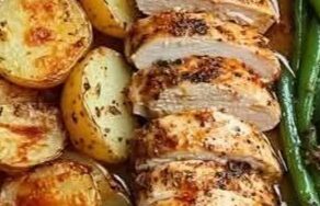 One Pan Garlic Herb Chicken with Roasted Potatoes & Green Beans