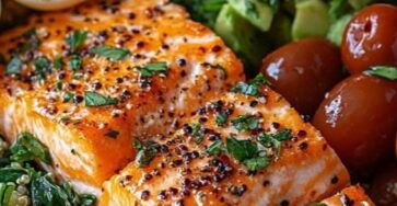 Ingredients: 1 salmon fillet (cut into chunks) 1/2 cup cooked quinoa 1 handful fresh spinach 2 soft-boiled eggs 1/2 avocado,…