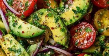Ingredients: 2 ripe avocados, sliced 1 cup cherry tomatoes (red & yellow), halved ΒΌ red onion, thinly sliced Fresh parsley…