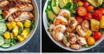 Ingredients: Mixed greens Sliced cucumber Sliced avocado Grilled chicken breast (sliced) Sweet corn kernels Instructions: Arrange mixed greens as the…