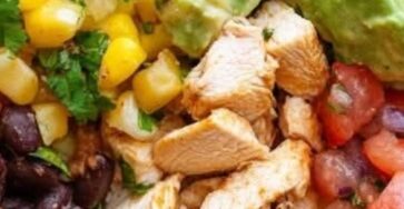 Ingredients: 1 cup cooked white rice1 grilled chicken breast, chopped1/2 cup black beans (seasoned)1/2 cup corn (grilled or steamed)1/4 cup…