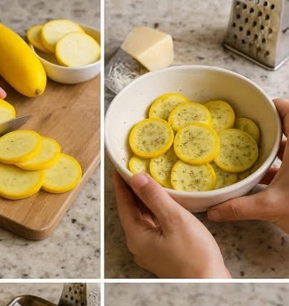 Wash and slice the yellow squash into ¼-inch thick rounds.