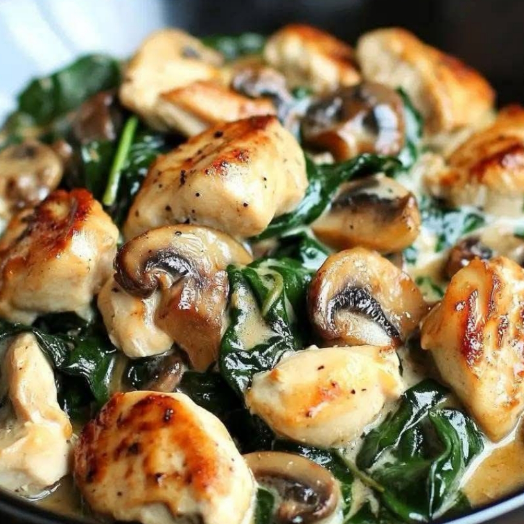 You’ll Need2 large boneless, skinless chicken breasts (or 4 small ones)2 cups fresh spinach, washed and chopped1 1/2 cups mushrooms, sliced (button, cremini, or shiitake work well)3 cloves garlic, minced1/2 cup onion, finely chopped1/2 cup chicken broth (low sodium preferred)1/2 cup heavy cream (or a lighter alternative like half-and-half)1/2 teaspoon dried thyme1/2 teaspoon smoked paprika1/2 teaspoon salt1/2 teaspoon black pepper1 tablespoon olive oil1 tablespoon butter1/4 cup grated Parmesan cheese(optional, for garnish)Step-by-Step Cooking