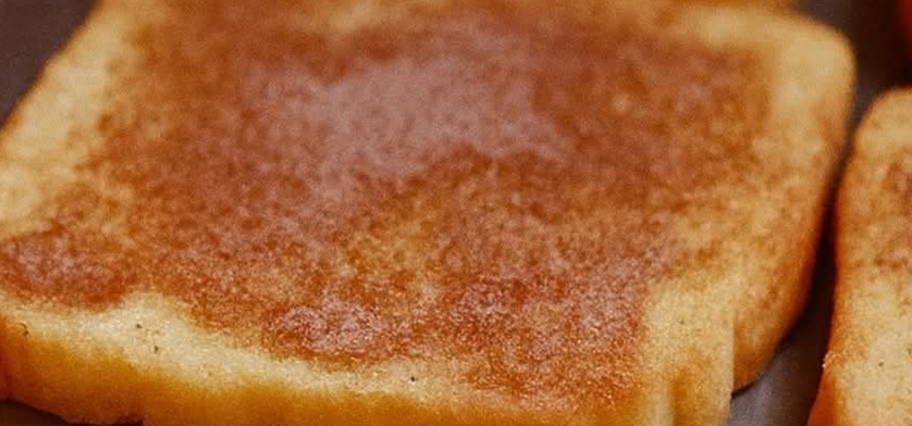 - Mix sugar + cinnamon, sprinkle evenly over buttered bread.