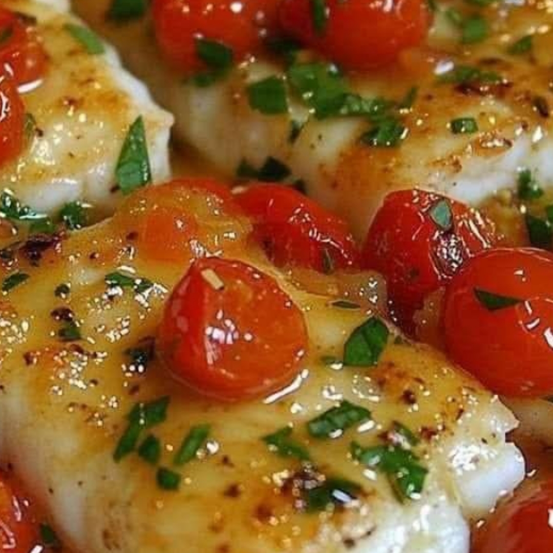 **Cod in a Tomato Lemon Butter Sauce Ingredients: 4 cod fillets (about 4-6 oz each) 2 tablespoons olive oil 2 tablespoons butter 2 cloves garlic, minced 1 pint cherry tomatoes (or 2 cups diced tomatoes) 1/2 cup white wine (or chicken broth) 1/2 cup fresh lemon juice (about 2 lemons) 1 teaspoon lemon zest 1 tablespoon capers (optional) Salt and pepper, to taste Fresh parsley, chopped, for garnish Instructions: 1. Prepare the Cod: Pat the cod fillets dry with paper towels. Season both sides with salt and pepper. 2. Sear the Cod: Heat the olive oil in a large skillet over medium-high heat. Add the cod fillets and cook for 3-4 minutes on each side, or until the fish is golden and cooked through. Remove the fillets from the skillet and set aside on a plate. 3. Make the Tomato Lemon Butter Sauce: In the same skillet, reduce the heat to medium. Add the butter and let it melt. Stir in the minced garlic and cook for about 1 minute until fragrant. Add the cherry tomatoes and cook until they begin to soften and release their juices, about 3-4 minutes. Pour in the white wine (or chicken broth) and lemon juice. Stir in the lemon zest and capers (if using). Allow the sauce to simmer for 2-3 minutes, letting it reduce slightly. 4. Return the Cod: Place the seared cod fillets back into the skillet with the sauce. Spoon the sauce over the fish and let it simmer for 1-2 minutes to heat through. 5. Garnish and Serve: Remove from heat and sprinkle with fresh parsley. Serve immediately, spooning the tomato lemon butter sauce over the fish.😋❤️