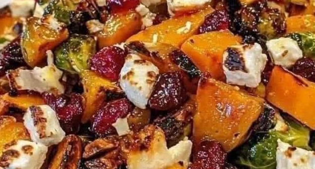 - In a large bowl, toss the butternut squash, Brus
