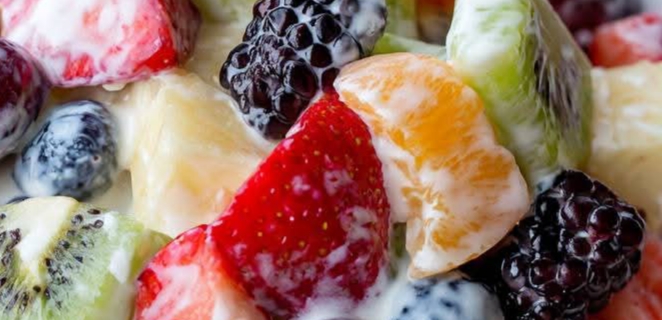- Add Greek yogurt and lightly fold until the fruit is coated.