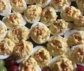 -Slice eggs in half lengthwise. Remove yolks to a medium bowl. Reserve 24 white halves; finely chop remaining 4 white halves.