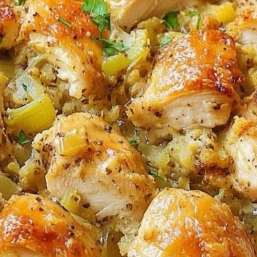 • 2 lbs cooked chicken, shredded or cubed (rotisserie works great!)• 1 (10.5 oz) can cream of chicken soup• 1 (10.5 oz) can cream of mushroom soup (or use 2 chicken)• 1 cup sour cream (or plain Greek yogurt)• ½ cup milk• ½ tsp garlic powder• ½ tsp onion powder• ½ tsp black pepper• 1 (6 oz) box stuffing mix (like Stove Top)• 1 ½ cups chicken broth (for moist stuffing)• ½ cup melted butter1. Preheat Oven: Set to 375°F (190°C). Grease a 9×13-inch baking dish.2. Prepare the Filling: In a large bowl, mix shredded chicken, cream soups, sour cream, milk, garlic powder, onion powder, and black pepper. Spread evenly in the baking dish.3. Make the Stuffing: In a separate bowl, combine stuffing mix with chicken broth and melted butter, stirring until just moistened.4. Assemble & Bake: Spread the stuffing evenly over the chicken mixture. Cover with foil and bake for 25 minutes.5. Uncover & Crisp: Remove foil and bake for another 10-15 minutes, until the top is golden brown.6. Serve & Enjoy: Let it rest for a few minutes, then dig in!This casserole is creamy, savory, and packed with comfort! Want to add veggies like peas or green beans? Let me know!