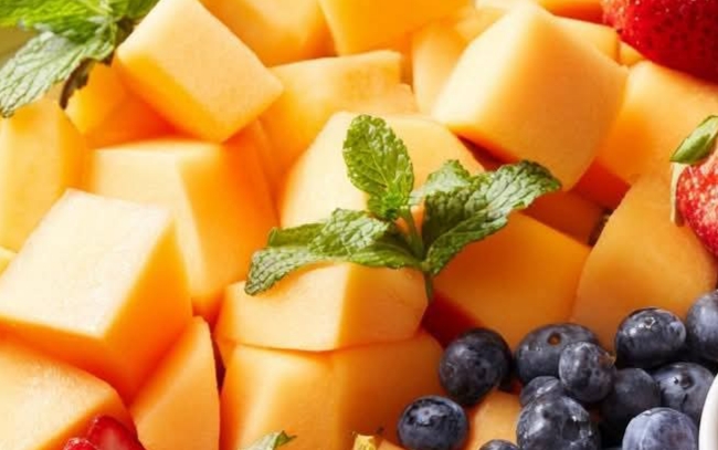 Garnish the platter with fresh mint leaves, tucking sprigs around the fruit for a pop of color.