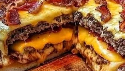 A mouthwatering fusion of two classics: burgers and pizza! This oversized creation is packed with juicy beef, gooey cheese, and crispy bacon—perfect for sharing at parties or indulging on a cheat day.