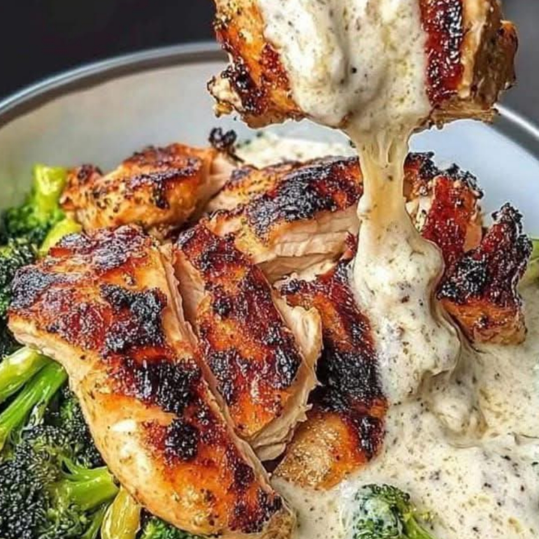 Serves 4)For the Chicken:2 boneless, skinless chicken breasts (or 4 chicken thighs)1 tbsp olive oil1 tbsp lemon juice1 tsp garlic powder1 tsp paprika½ tsp salt½ tsp black pepper½ tsp dried oregano (optional)For the Broccoli Bowl:4 cups broccoli florets1 tbsp olive oil½ tsp salt¼ tsp black pepper2 cups cooked brown rice, white rice, or quinoa¼ cup chopped green onions (for garnish)1 tbsp sesame seeds or toasted almonds (optional)For the Creamy Garlic Sauce:½ cup Greek yogurt or mayonnaise2 tbsp olive oil or melted butter2 tbsp lemon juice2 garlic cloves, minced½ tsp salt¼ tsp black pepper1 tbsp water or milk (to thin, if needed)