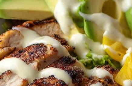 1️⃣ Season chicken with salt, pepper, and a little olive oil. Grill until cooked, then slice.