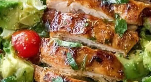 Grill chicken for 5–7 minutes per side or until fully cooked and juices run clear. Let rest for 5 minutes, then slice thinly.