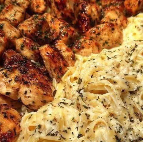 Ingredients:For the Chicken:1 lb boneless, skinless chicken breasts, cut into 1-inch cubes1 tablespoon olive oil1 teaspoon paprika1/2 teaspoon garlic powder1/4 teaspoon salt1/4 teaspoon black pepper1/4 teaspoon cayenne pepper (optional)For the Creamy Garlic Sauce:1/2 cup mayonnaise1/4 cup sour cream2 cloves garlic, minced1 tablespoon chopped parsley1 teaspoon lemon juice1/4 teaspoon salt1/4 teaspoon black pepperInstructions:Prep the Chicken: In a bowl, combine chicken cubes, olive oil, paprika, garlic powder, salt, pepper, and cayenne pepper (if using). Toss to coat.Grill the Chicken: Grill the chicken cubes over medium heat for 2-3 minutes per side, or until cooked through.Make the Creamy Garlic Sauce: In a small bowl, whisk together mayonnaise, sour cream, garlic, parsley, lemon juice, salt, and pepper.Serve: Arrange grilled chicken bites on a platter and drizzle with Creamy Garlic Sauce.Tips & Tweaks:Spice it up: Add more cayenne pepper or a pinch of red pepper flakes to the chicken marinade.Make it a meal: Serve chicken bites with a side of rice, pasta, or vegetables.Garnish with fresh parsley or chives.Enjoy!