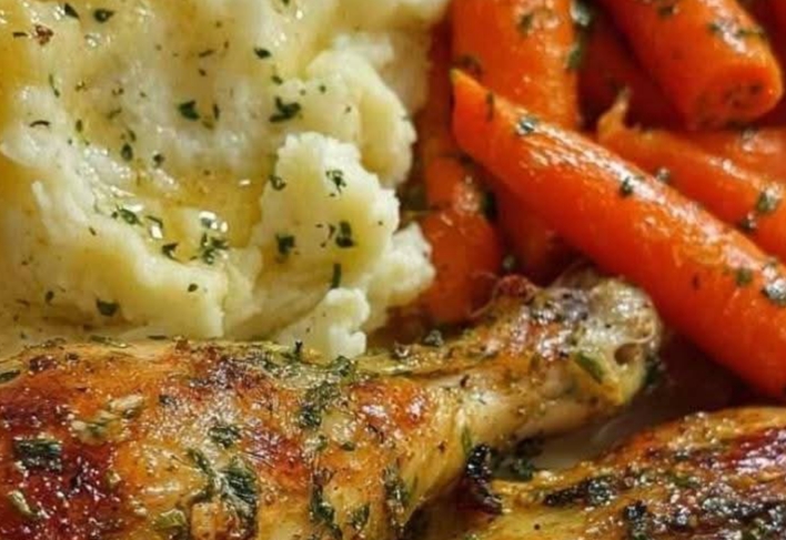 Herb Baked Chicken Drumsticks with Mashed Potatoes & Carrots