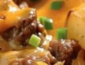 9×13-inchbaking dish. - Add the potatoes and cheese: Arrange the thinly sliced potatoes on top of the beef layer. Then sprinkle the grated cheddar cheese generously over the potatoes. This cheesy layer will melt beautifully into the creamy sauce.