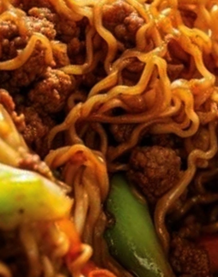 Ingredients:1 lb lean ground beef1 bell pepper, sliced4 tbsp olive oil3 cloves garlic, finely chopped1/2 onion, sliced1 teaspoon grated ginger3/4 cup matchstick-cut carrots2 cups diced broccoli florets3 packages of instant ramen noodles (seasoning packets discarded)For the Sauce:1/3-1/2 cup chicken broth2 tsp cornstarch3 tbsp light soy sauce1 tbsp light brown sugar2 tsp toasted sesame oil1 tbsp rice vinegar2 tbsp hoisin sauce2 tsp Sriracha sauce, or to tastePreparation:In a large skillet, heat 2 tbsp of olive oil over medium heat. Sauté the onion, garlic, and ginger until the onion becomes translucent.Add the ground beef to the skillet. Cook until browned, making sure to break it apart with a spatula.Toss in the bell pepper, broccoli, and carrots. Cook for an additional 3-4 minutes, stirring occasionally.In a separate bowl, whisk together all the sauce ingredients until well combined.Pour the sauce over the beef and vegetable mixture in the skillet. Let it simmer for 2-3 minutes until the sauce slightly thickens.Meanwhile, cook the instant ramen noodles according to package instructions, omitting the seasoning packets. Drain well.Add the cooked noodles to the skillet, tossing to ensure everything is evenly coated with the sauce.Serve the ground beef ramen noodles hot, and savor the comforting and satisfying flavors.This ground beef ramen is more than just a meal; it’s a reminder of how food can be both a necessity and a pleasure, capable of evoking memories and creating new ones. Enjoy this dish as a celebration of flavor, simplicity, and the joy of cooking.