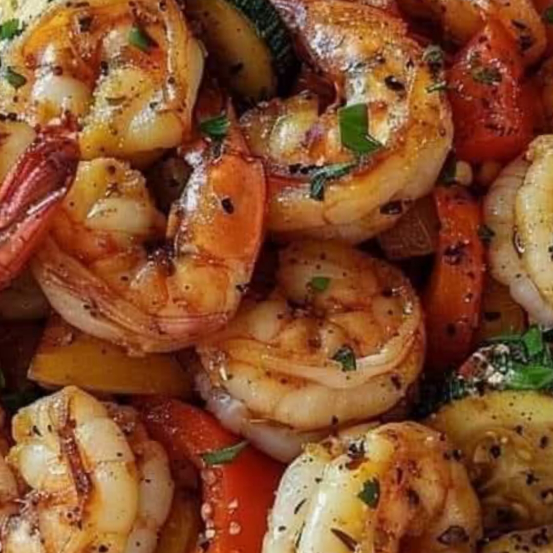 For the Shrimp:1 lb (450g) large shrimp, peeled and deveined2 tbsp olive oil3 cloves garlic, mincedJuice of 1 lemon (about 2 tbsp)1 tsp paprika½ tsp red pepper flakes (optional, for heat)Salt and pepper, to tasteFor the Vegetables:2 medium zucchini, sliced into half-moons1 red bell pepper, sliced1 yellow bell pepper, sliced1 cup cherry tomatoes, halved1 cup fresh spinach1 tbsp olive oilFor the Herb Mix:1 tsp dried oregano1 tsp dried thyme2 tbsp fresh parsley, chopped1 tbsp fresh dill or basil, chopped (optional)Zest of 1 lemonSalt and pepper, to taste