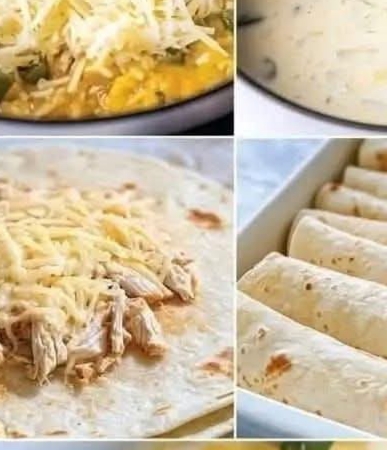 2. Assemble the Enchiladas: Preheat oven to 350 degrees F (175 degrees C). Spread a thin layer of the chicken filling down the center of each tortilla. Roll up tightly and place seam-side down in a greased 9×13 inch baking dish.