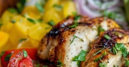 Grill the chicken with olive oil, salt, pepper, and oregano. Slice into strips.