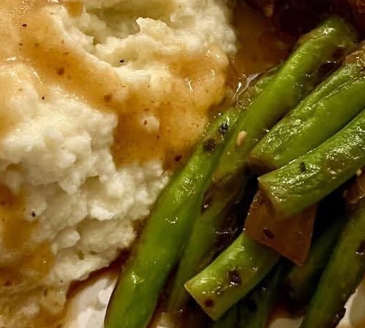 Ingredients (Pot Roast):3–4 lb chuck roast1 packet ranch dressing mix1 packet au jus gravy mix1/2 cup unsalted butter6–8 pepperoncini peppers1/4 cup pepperoncini juiceIngredients (Gravy):Drippings from roast2 tablespoons flour or cornstarch1/2 cup beef broth (as needed)Ingredients (Mashed Garlic Cauliflower):1 large head cauliflower, cut into florets3 garlic cloves, peeled2 tablespoons butter1/4 cup heavy cream (or milk)Salt and black pepper to tasteIngredients (Green Beans):1 lb fresh green beans, trimmed2 tablespoons butter2 garlic cloves, mincedSalt and pepper to tasteInstructions (Pot Roast):Place chuck roast in a slow cooker.Sprinkle ranch mix and au jus mix over the roast.Add butter and pepperoncini peppers on top, plus pepperoncini juice.Cover and cook on low 8 hours or high 4–5 hours, until tender and falling apart.Instructions (Gravy):Remove roast from slow cooker and shred.Pour drippings into a saucepan. Whisk in flour or cornstarch slurry.Cook on medium heat until thickened, adding beef broth if needed.Instructions (Mashed Garlic Cauliflower):Boil cauliflower and garlic in salted water until tender, about 10 minutes. Drain well.Mash with butter, cream, salt, and pepper until smooth.Instructions (Green Beans):Steam or blanch green beans until tender-crisp, about 5 minutes.In a skillet, melt butter and sauté garlic for 1 minute.Toss green beans in garlic butter, season with salt and pepper.To Serve:Place shredded pot roast on a plate, drizzle with rich gravy.Add a scoop of mashed garlic cauliflower and a side of green beans for a complete Southern-style comfort meal.