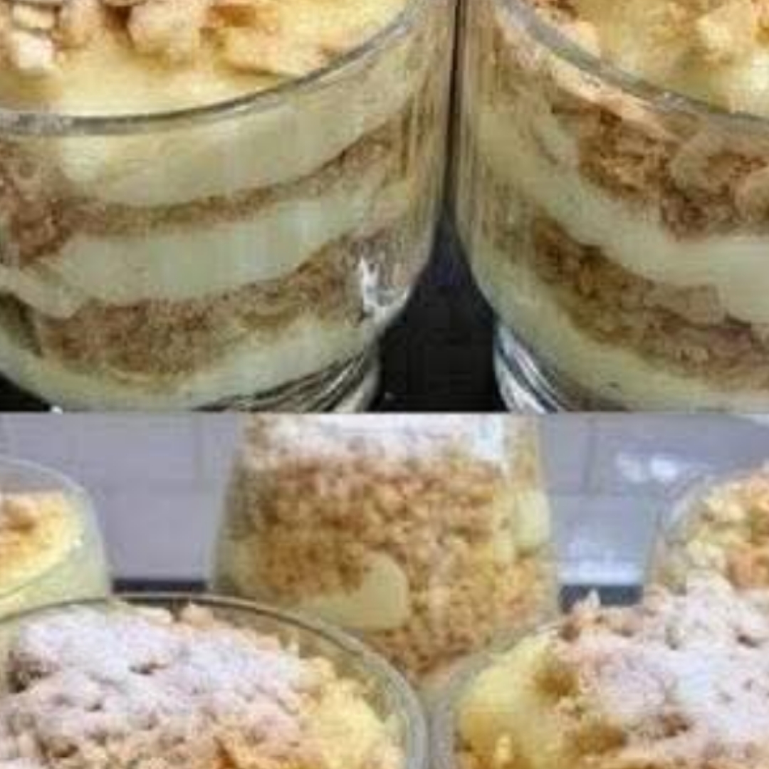 1 liter milk2 eggs5 tablespoons sugar3 tablespoons cornstarch1 tablespoon flour (optional for thickness)1 teaspoon vanilla extract1 tablespoon butter200g plain tea biscuits (like Marie or digestive biscuits), crushedPowdered sugar, for garnishMake the Custard:In a saucepan, whisk together eggs, sugar, cornstarch, and flour until smooth.Gradually add milk, whisking constantly to avoid lumps.Cook over medium heat, stirring continuously until thickened (8–10 minutes).Remove from heat and stir in butter and vanilla. Let it cool slightly.Layer the Dessert:In clear glasses or cups, add a layer of crushed biscuits.Top with a generous spoonful of warm custard.Repeat layers (usually 2–3 times), ending with custard.Top It Off:Sprinkle more crushed biscuits on top and a dusting of powdered sugar.Chill (Optional):Let the dessert cool in the fridge for at least 30 minutes to set—or enjoy slightly warm.Notes:You can use store-bought vanilla pudding for a quicker version.Add a splash of rum or coffee to the crushed biscuits for an adult twist.Use whipped cream or mascarpone for extra decadence.Tips:Want more texture? Leave some biscuit pieces chunkier.Use chocolate biscuits or cocoa powder for variation.Serve in small jars or dessert cups for portion control and presentation.Nutritional Info (Approx. per serving):Calories: ~280–320 kcalProtein: 6–8gCarbs: 35gFat: 12gSugar: 18gFiber: 1gHealth Benefits:Milk and eggs provide calcium, protein, and essential vitamins.A satisfying treat that can help curb heavier dessert cravings.Can be made lighter with low-fat milk or sugar substitutes.Q&A:Q: Can I make this ahead of time?A: Yes! It gets even better after a few hours in the fridge as the flavors meld.Q: Can I use plant-based milk?A: Absolutely—almond or oat milk works well. Just adjust thickening time slightly.Q: How long does it last in the fridge?A: 2–3 days when covered well.Q: What biscuits are best?A: Marie biscuits, graham crackers, or digestive biscuits all work beautifully.Q: Is this dessert kid-friendly?A: Totally! It’s sweet, creamy, and fun to assemble together.