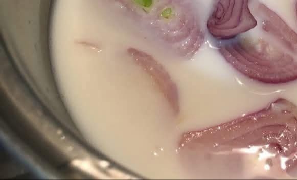 - Place the chopped onion and milk in a saucepan.