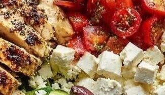 Ingredients: 1 grilled chicken breast, sliced 1 cup cherry tomatoes, halved 1 cup cucumber, diced Β½ cup feta cheese, cubed…