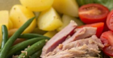 Ingredients : 4 slices of crispy turkey bacon 🥓 1 cubed potato 🥔 100g of green beans 🔵 1 boiled…