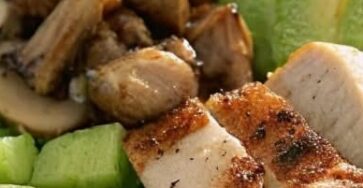 🌟 Ingredients:1 grilled chicken breast 🍗 1 ripe avocado 🥑 1 cup sliced mushrooms 🍄 1 cucumber 🥒 4 cups…