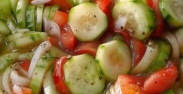 2 cups cucumber, thinly sliced (English or Persian cucumbers preferred)1½ cups cherry or grape tomatoes, halved½ large red or sweet…