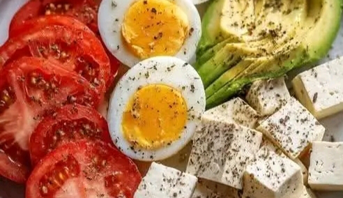- Assemble Plate: Arrange the eggs, avocado, tomato slices, and tofu on a plate.