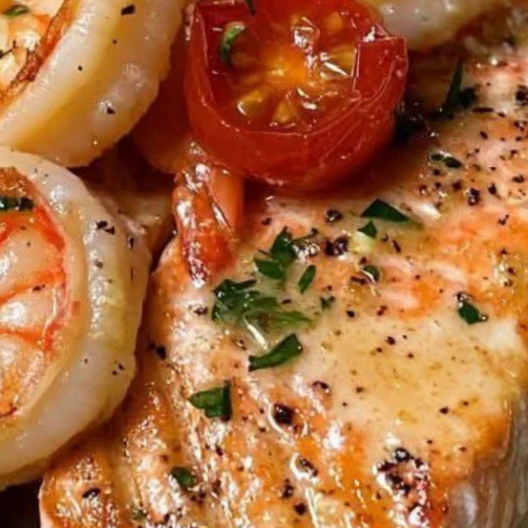 For the Salmon & Shrimp:– 2 salmon fillets (skin-on or skinless)– ½ lb (225g) large shrimp, peeled & deveined– 1 tsp paprika– ½ tsp garlic powder– ½ tsp Italian seasoning– ½ tsp salt– ½ tsp black pepper– 2 tbsp olive oil– 1 tbsp butter#### **For the White Wine Garlic Butter Sauce:**– 4 tbsp butter (divided)– 4 garlic cloves, minced– ½ cup dry white wine (e.g., Sauvignon Blanc or Pinot Grigio)– ½ cup heavy cream (or half-and-half)– ¼ cup chicken or seafood broth– 1 tbsp lemon juice– 2 tbsp fresh parsley, chopped– ¼ tsp red pepper flakes (optional)