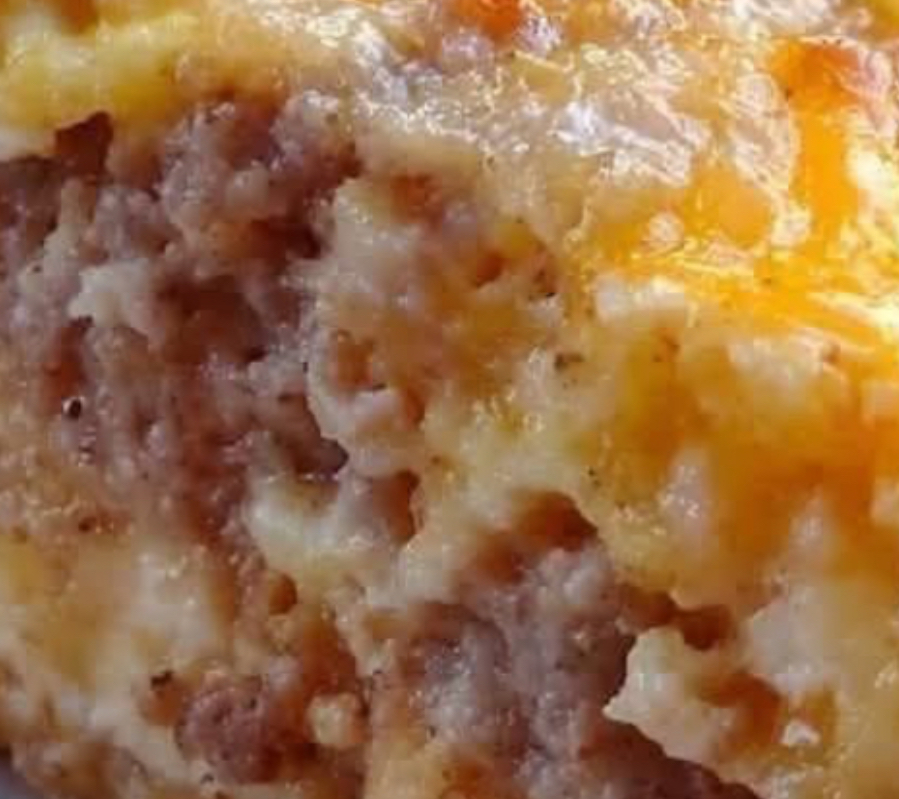 Ingredients:1 lb (450 g) breakfast sausage (pork, chicken, or turkey)6 large eggs2 cups milk (or half-and-half for creamier texture)2 cups shredded cheddar cheese (or mix of cheddar & mozzarella)4 cups frozen hash browns (shredded or cubed, thawed)1 small onion, diced (optional)1 tsp garlic powder1 tsp black pepper1 tsp salt (adjust to taste)½ tsp paprika (optional, for color & flavor)Instructions:Cook sausage: In a skillet, cook sausage (and onion if using) until browned. Drain excess grease.Prepare baking dish: Grease a 9×13-inch baking dish. Spread thawed hash browns evenly at the bottom.Layer sausage & cheese: Sprinkle cooked sausage over the hash browns, then top with 1 ½ cups of shredded cheese.Make egg mixture: In a bowl, whisk together eggs, milk, garlic powder, salt, pepper, and paprika.Assemble: Pour the egg mixture evenly over the sausage & hash browns. Sprinkle remaining cheese on top.Bake: Place in a preheated oven at 350°F (175°C) for 40–45 minutes, or until eggs are set and the top is golden brown.Cool & serve: Let rest for 5 minutes before slicing.