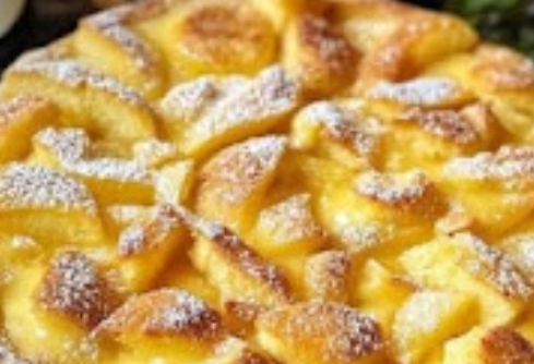 Table of ContentsIntroduction: The Fastest Way to Apple Pie.Detailed Ingredients: Minimalist Pantry Staples.Step-by-Step Instructions: Searing and Steaming.Serving and Presentation: The Golden Finish.Nutritional Overview: Light Fruit Dessert.Culinary Essay: Why Skillet Baking Works.2. Introduction: The Fastest Way to Apple PieWhen you crave the flavors of an apple pie but don’t have time for pastry crusts, this Skillet Apple Cake is the perfect solution. By cooking the apples in a pan before pouring the batter over them, you achieve a caramelized fruit layer and a fluffy cake in under 15 minutes.3. Detailed IngredientsThe Fruit: 3 medium apples, peeled and sliced into uniform wedges.The Sauté: 1 tablespoon of butter إعلان2 and a sprinkle of cinnamon to soften the apples.The Batter: A pourable mixture of egg, sugar, flour, and milk4. Step-by-Step InstructionsSauté the Fruit: Melt butter in a non-stick frying pan and add the apple slices and cinnamon. Cook over medium heat for 2–3 minutes until they begin to soften.Pour the Batter: Pour the prepared cake batter directly over the apples in the pan, spreading it evenly to cover all the fruit.Cover and Cook: Place a lid on the pan and cook on low heat for about 10 minutes. The steam trapped by the lid will help the cake rise and cook through without burning the bottom.5. Serving and PresentationThe Inversion: Once the top of the cake is set, flip it onto a plate so the caramelized apples are facing upward.Finishing Touch: Dust with confectioners’ sugar while warm for a professional, bakery-style look.6. Nutritional OverviewBecause this recipe uses fresh apples and a light batter, it is lower in fat than traditional crust-based pies. Leaving the skins on the apples (optional) can further increase the fiber content.7. Culinary Essay: Why Skillet Baking WorksBaking on the stovetop utilizes conduction (heat from the pan) and convection (heat from the trapped steam) simultaneously. This dual-action heat is what allows a cake that normally takes 45 minutes in the oven to be ready in just 10. The direct contact with the pan creates a beautiful golden crust on the apples that is difficult to achieve as quickly in a standard oven