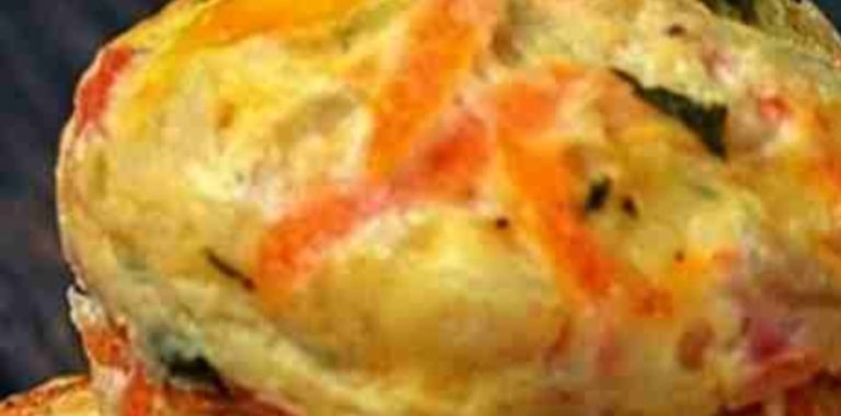 - Pour the egg and veggie mixture into the prepared muffin tin, filling each cup about 3/4 full.