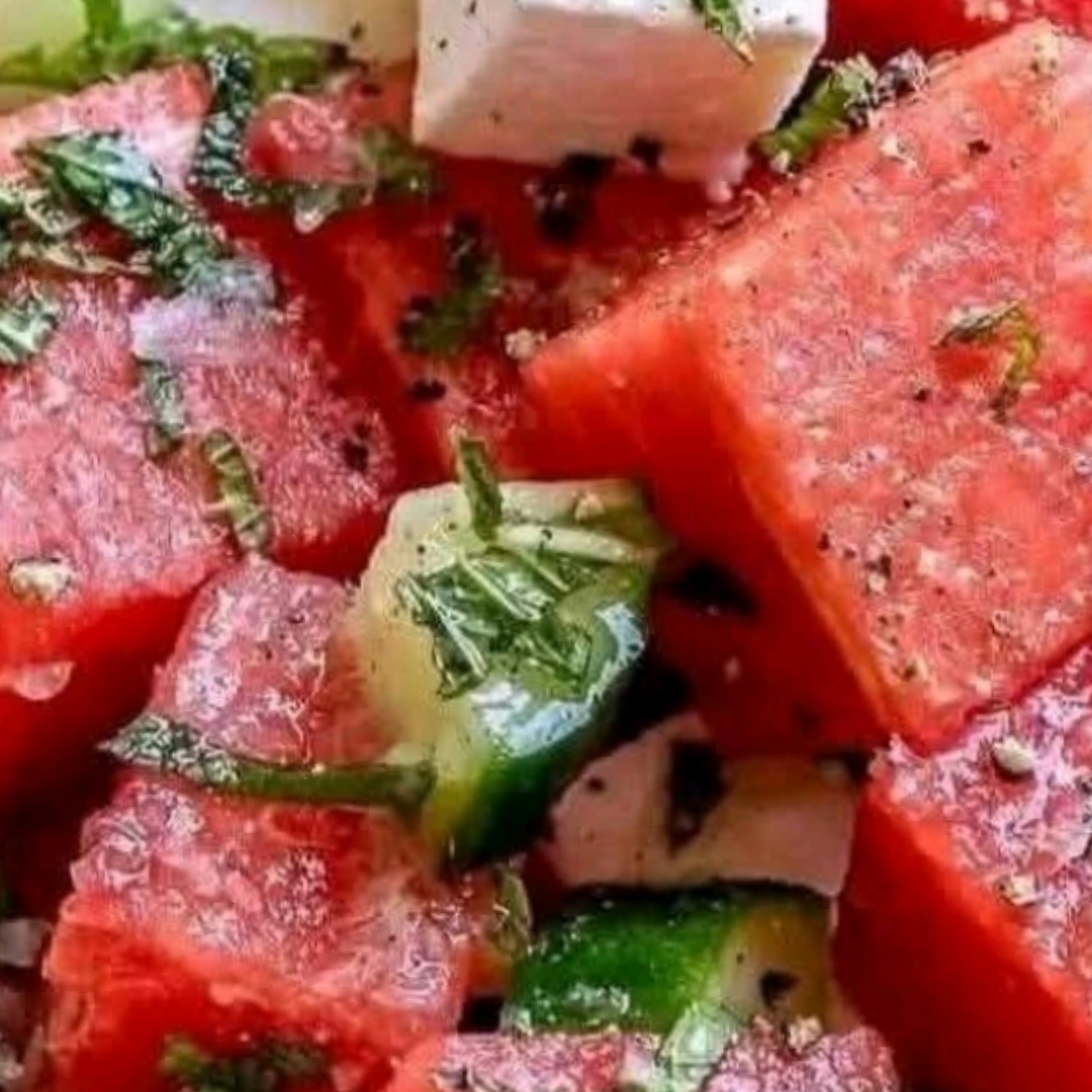 Total Time: 10 minutesStep 1: Prepare the IngredientsCube the watermelon into bite-sized pieces.Slice or dice the cucumber and thinly slice the red onion (if using).Chop the mint leaves and crumble the feta cheese.Step 2: Make the DressingIn a small bowl, whisk together olive oil, lime juice, honey, salt, and black pepper.Step 3: Assemble the SaladIn a large bowl, combine watermelon, cucumber, red onion, and mint.Drizzle the dressing over the salad and gently toss to combine.Sprinkle with crumbled feta cheese and optional arugula or spinach.Step 4: Serve & Enjoy!Serve immediately, or refrigerate for 15-20 minutes to chill before serving.Nutritional Information(Per Serving, Approximate for 1 cup of salad)– Calories: 120 kcal– Protein: 3g– Carbs: 12g– Fat: 7g– Fiber: 1g– Sugar: 9g– Sodium: 200mg (varies based on feta cheese)Notes & Tips– Make it Dairy-Free: Skip feta or use vegan feta.– Add Protein: Include grilled chicken, chickpeas, or quinoa.– Extra Crunch: Toss in toasted almonds or walnuts.– Serving Suggestion: Best served cold on a hot day.– Storage Tip: Store in an airtight container in the fridge for up to 24 hours, but best eaten fresh.Enjoy this light, refreshing, and flavorful Watermelon Salad with Cucumber and Feta—a perfect summer treat!